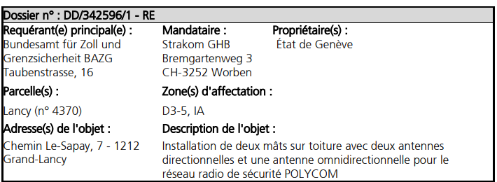 La ville de Lancy invite toutes les personnes intéressées à faire par écrit, dans un délai de 30 jours à compter de la publication dans la Feuille d'avis officielle, les observations relatives au projet susmentionné.