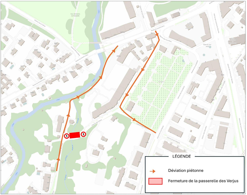 En raison d’une intervention urgente visant à garantir la sécurité des usager-ères, la passerelle des Verjus est actuellement fermée et ne peut plus être empruntée jusqu’à nouvel ordre.